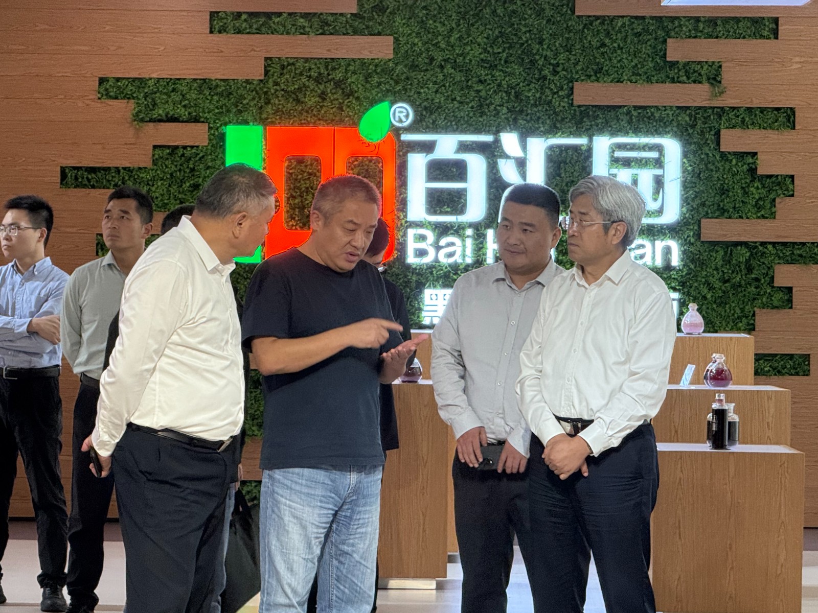 一行人实地参观了黑莓展厅。在黑莓展厅,集团董事长徐厚军向各位领导详细介绍了百汇园集团的发展历程、产业布局与核心竞争优势,并重点展示了集团在黑莓种植技术研发、精深加工产品创新以及推动农旅融合、促进三产联动发展等方面所取得的丰硕成果。