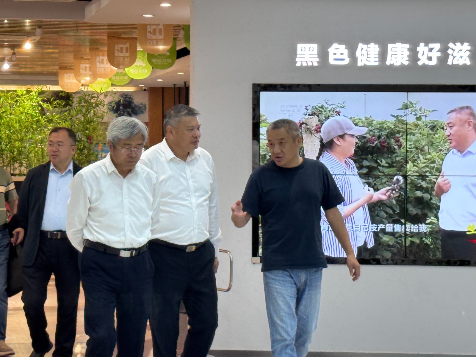一行人实地参观了黑莓展厅。在黑莓展厅,集团董事长徐厚军向各位领导详细介绍了百汇园集团的发展历程、产业布局与核心竞争优势,并重点展示了集团在黑莓种植技术研发、精深加工产品创新以及推动农旅融合、促进三产联动发展等方面所取得的丰硕成果。