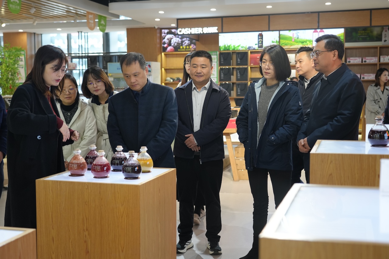 一行人实地参观了黑莓展厅。在黑莓展厅,行政总监魏娟向各位领导详细介绍了百汇园集团在黑莓种植、产品加工及农旅融合方面的发展情况。